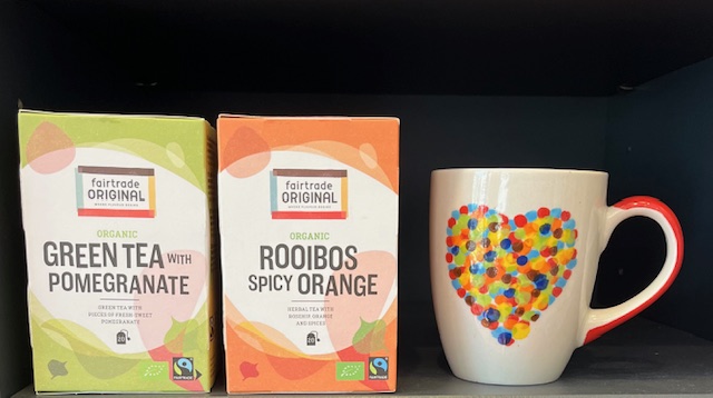 In ons assortiment hebben wij fair trade koffie en thee. Thee is tevens verkrijgbaar in cadeauverpakking als theeroosje en biedermeier. Beiden bevatten 10 theezakjes in 5 verschillende smaken en in de boeketjes is ook een klein schoteltje verwerkt. Daarnaast zijn er cadeauverpakkingen in de vorm van een zakje met 10 kleine chocolaatjes van Tony’s Chocolonely en de chocoladerepen met een vrolijke tekst, zoals “BEDANKT” en “HIEPERDEPIEP”.