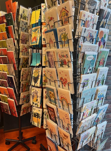 U vindt bij ons kaarten van het merk Floris, gemaakt op gerecycled papier en met plantaardige olie als inktbasis. Tevens sets van 5 kaarten met handgeschilderde illustraties. Al deze kaarten worden gemaakt in samenwerking met mensen met een beperking. Daarnaast ruime keuze uit de prachtig gedecoreerde ‘gaelle boissonnard collection’.